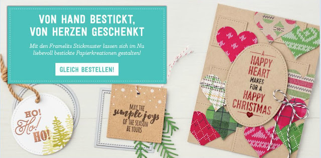 Die Framelits Formen Stickmuster können ab dem 1.11. gekauft werden, bevor sie im Jahreskatalog 2017-2018 offiziell erscheinen. Darüber hinaus gibt es passende Stempelsets mit einem Preisnachlass von 25%!
