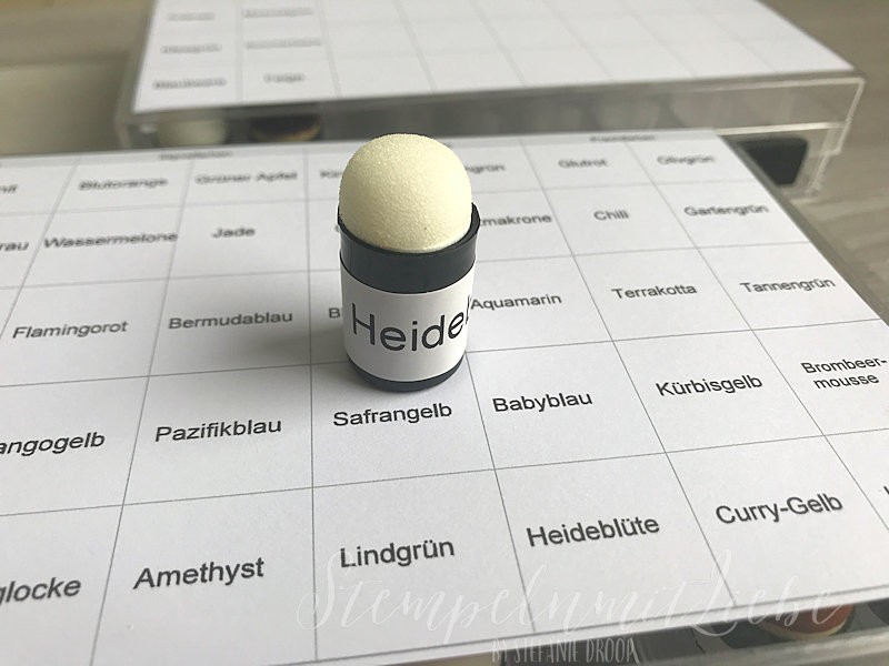 Steffi (Stempelwiese) hat hier eine tolle Datei zur Verfügung gestellt, die man selbst bearbeiten kann und man so auch mit den neuen Farben bestens gerüstet ist. Die In Color Farben habe ich in einer Extrabox, sowie die Basisfarben.