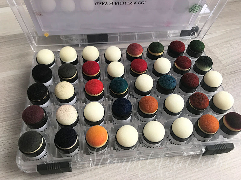 heute möchte ich Euch einen Tipp für die Fingerschwämmchen geben. Ich nutze gern für jede Farbe einen eigenen Fingerschwamm und damit diese gut sortiert sind, habe ich mir bereits vor einiger Zeit eine passende Aufbewahrung geholt. Die Box gibt es auch in den verschiedensten Bastelshops, sucht Euch hier einfach den idealen Shop für Euch aus.
